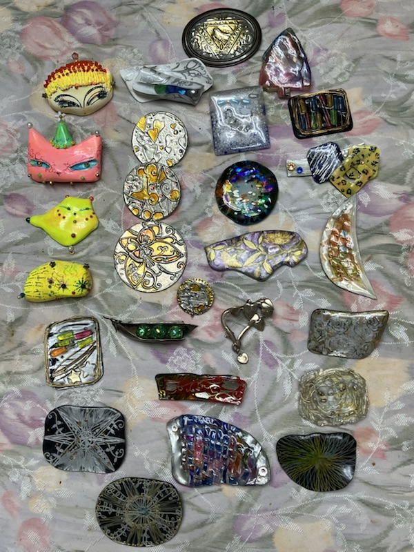 アクセサリー大好きなレイコサン。それが昂じて、アクセサリー作りの講座に迄通いました。そこは、職人さんが来る世界。一応習ったものの、そこまでは…。と、習った事を糧に自分流で、チョコチョコ制作。今朝、棚を片付けていると、たくさんのブローチが出現!で、パチリ!まだまだ有るのだけれど…。   近頃は、お気に入りの好指輪しかしていない。これから、冬服。目立たず付けられる…と、楽しみができました。