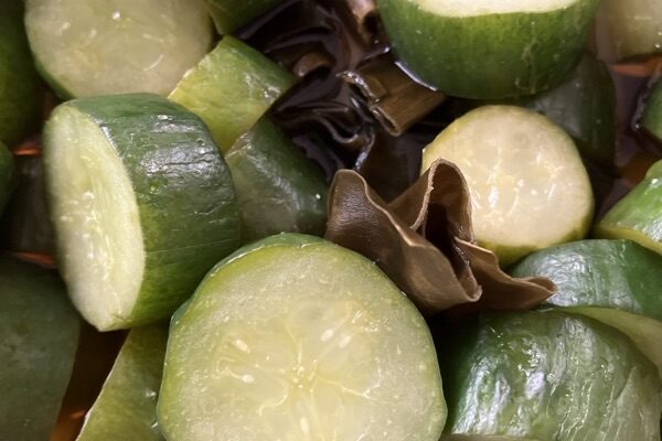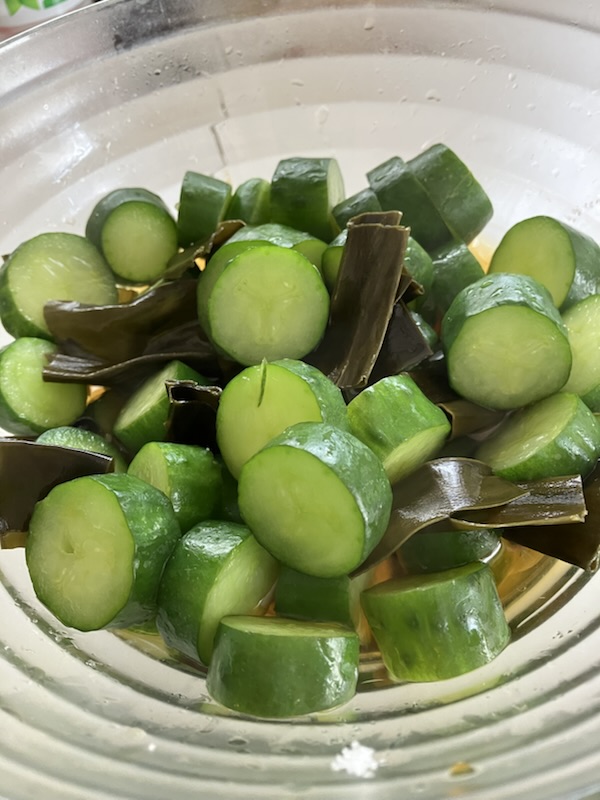 それ行け!礼子先生 「アートの樹」 2025年12月7日 カリカリきゅうりの 甘酢漬け Posted By: 船本 禮子 # お絵描き教室アートクラブ子どものちから, #お絵かきヒーロー研究室 今朝も、きゅうり🥒4本の甘酢漬けを作りました。塩をたっぷりまぶしたきゆうりを、適当な厚さに切り、たっぷりの熱湯でさっと茹でます。 茹でた熱々のきゅうりを, 甘酢の中に放り込みます。 あれば、出し昆布を適当に切って、 入れておくと、出汁も出るし、 酢昆布が出来上がります。 一石二鳥? 醒めたら、そのまま密封パックに入れ冷蔵庫に。(日持ちします。) 酢は、「かんたん酢」です。 (少し甘めになりますが…)
