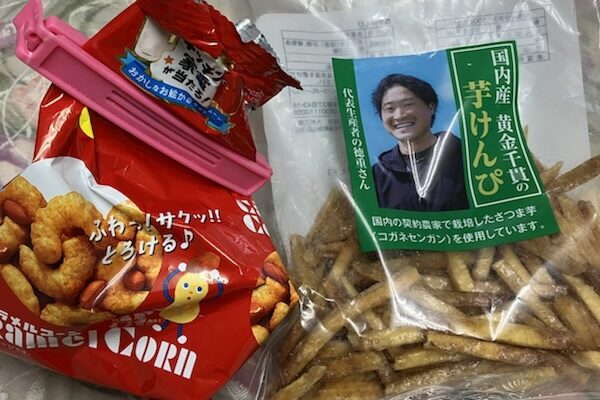 今日は、夫も私も家にいる日。 家に居ると、必ず3時のオヤツがいります。 探した結果、イカの姿フライ.芋ケンピ、キャラメルコーンの残り物がありました。高市さんが、首相になられたニュースをぼんやり見な