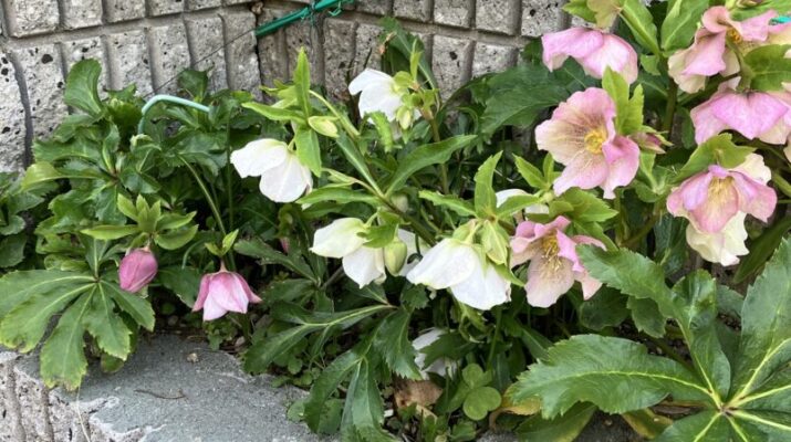 名前に惹かれて植えた、クリスマスローズ。手入れが行き届かないのに、今年もいっぱい咲きました。 少しずつ増えて、あちこちに顔を出しています。葉はゴツゴツ無骨なのに、可愛い花です。夫は、花が下を向いているので、好きではないそ